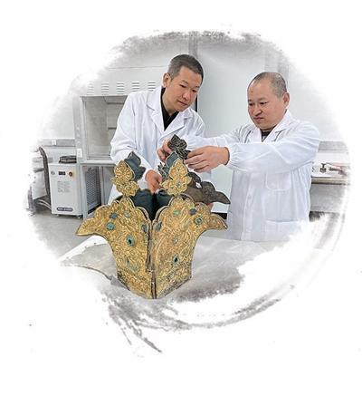 青海乌兰泉沟一号墓出土皇冠拼接规复中 黄 希供图